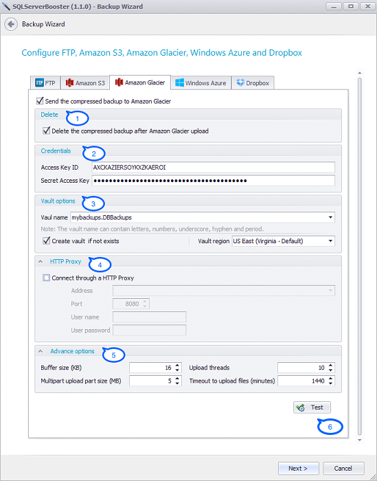 - Upload threads: This property determines how many active threads will be used to upload the backup file(s)