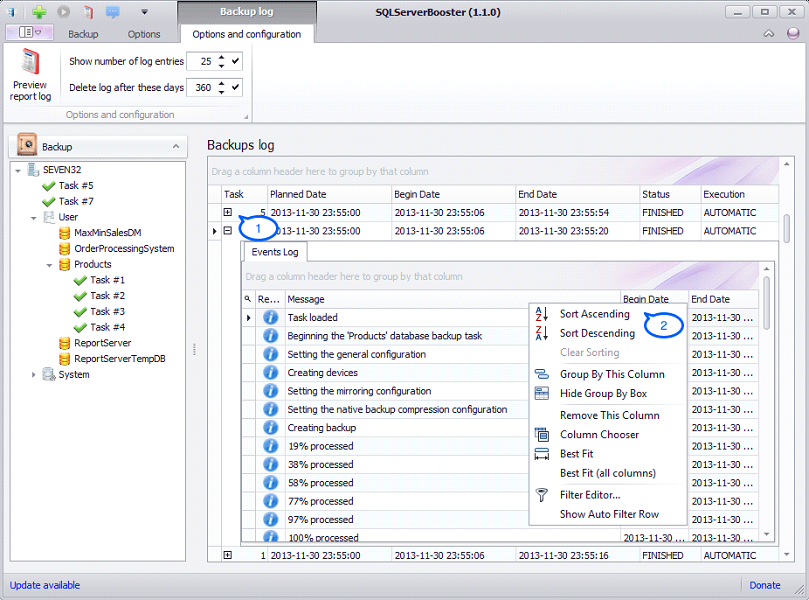 - Doing a Right-Click over a column you can customize the presentation of the information: