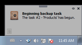 This alerts shows every time that a tasks stars or ends. It indicate the tasks that is affected and a you can make a Left-Click over the text or the bottom-left icon
